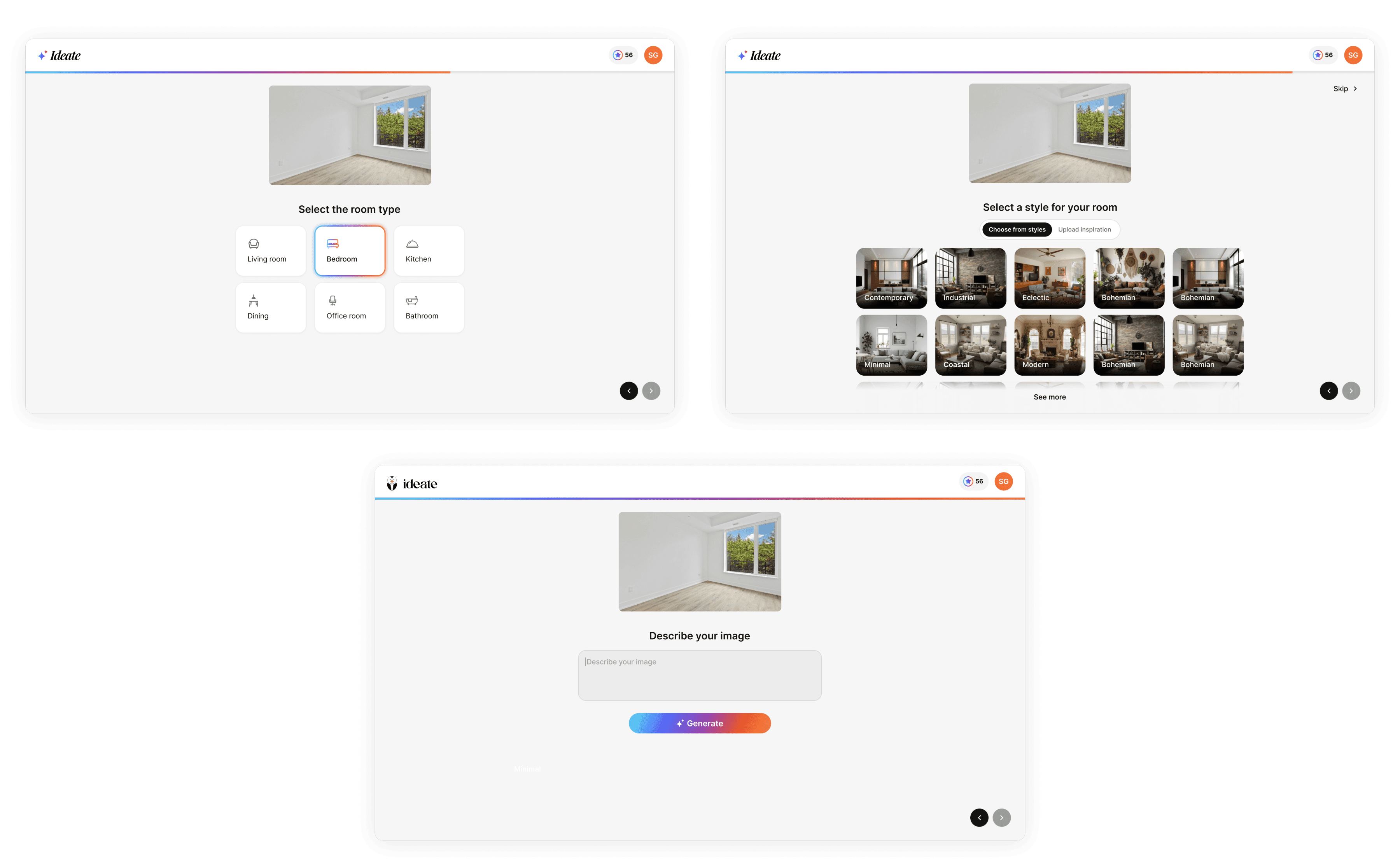 I studied existing AI interior design platforms such as Collov.ai and ReimagineHome to understand where users were getting stuck.