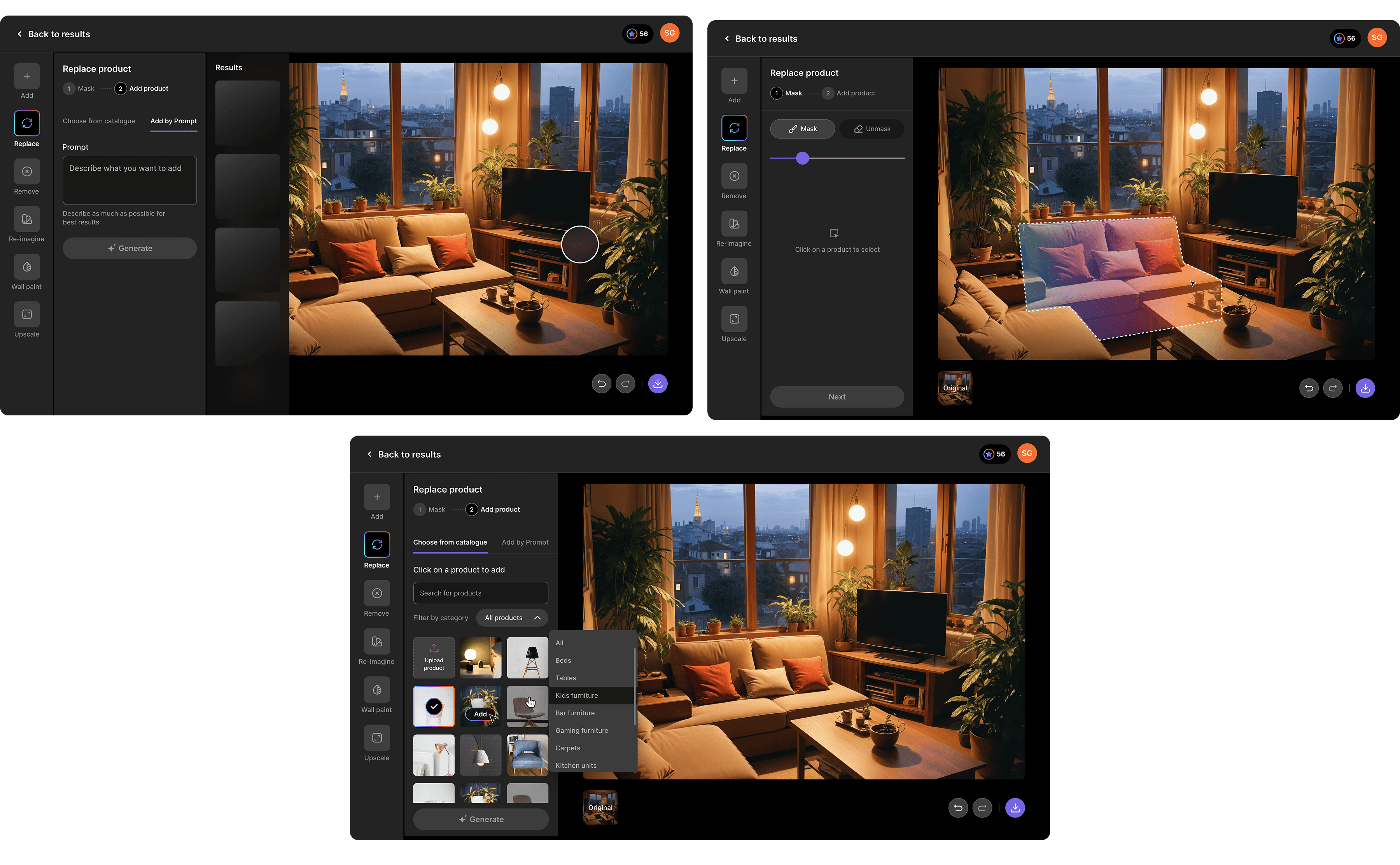 Users looking to make small, targeted furniture changes felt slowed down by broader redesign steps. Introducing a focused entry path allowed quicker updates without pushing users through unnecessary decisions. This reduced unnecessary decision branching and helped users make progress without reopening earlier choices.